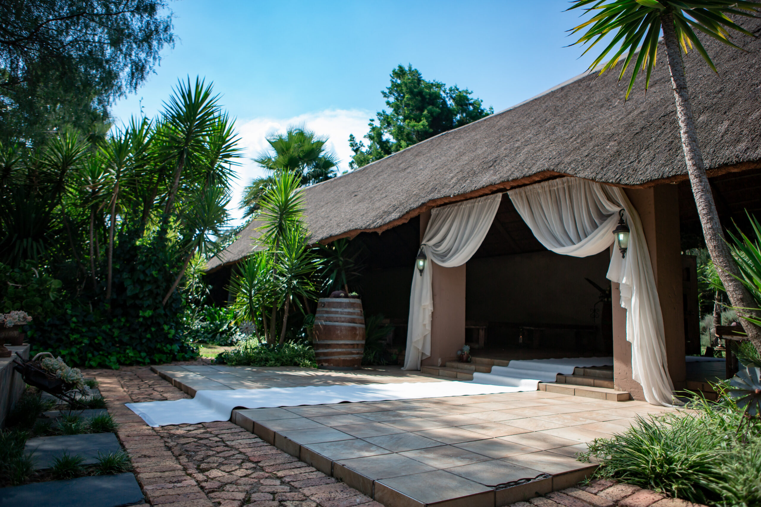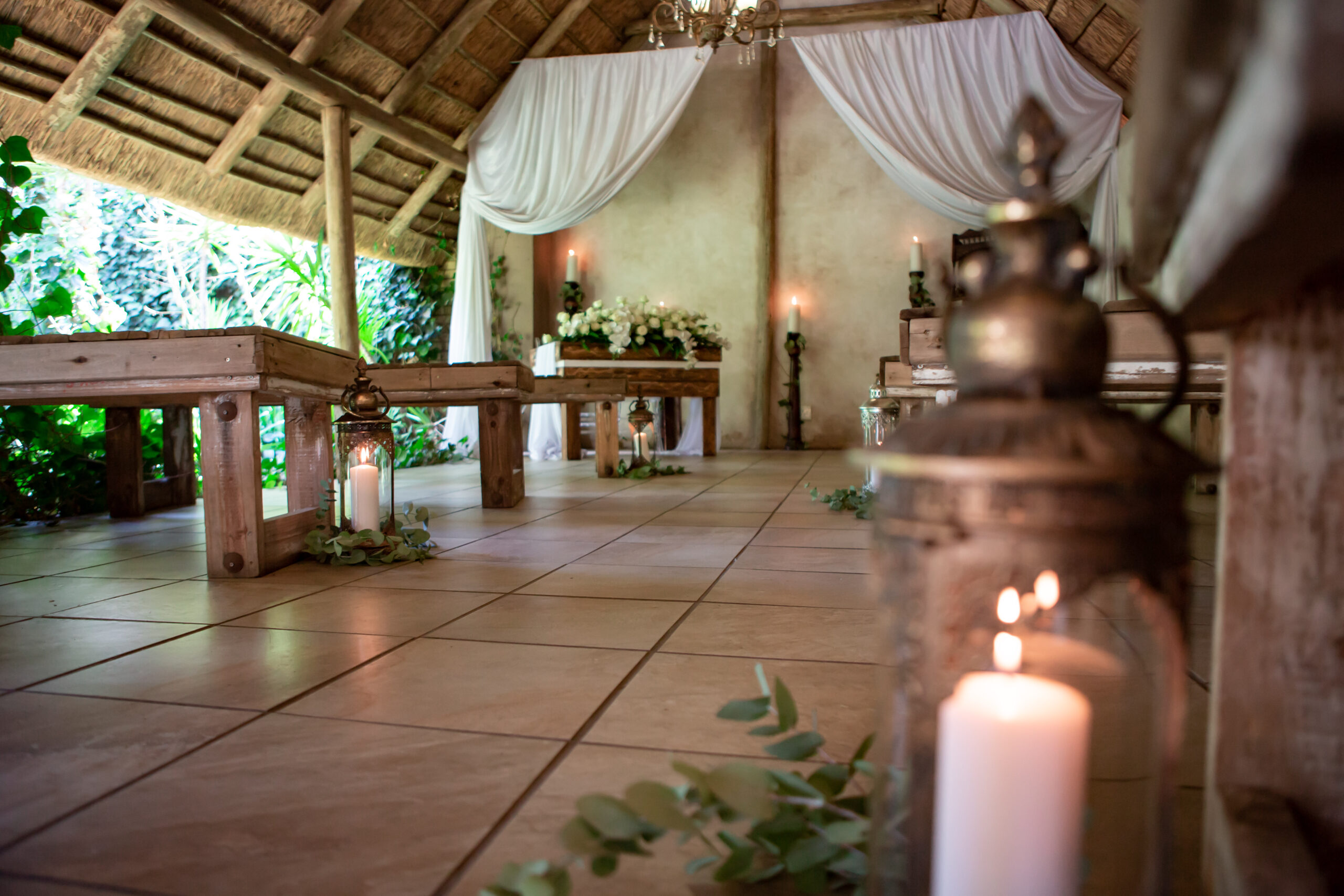 A romantic open-air chapel surrounded by lush ivy, tranquil water features, and natural rustic charm — creating the perfect garden oasis for an intimate “I do.”
